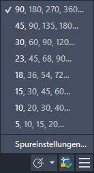 | Finden | Spurverfolgung | Verfolgt den Cursor entlang angegebener polarer Winkel. |