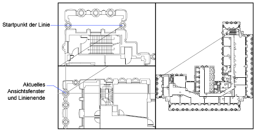 - Legen Sie ein anderes Ansichtsfenster als aktuell fest, indem Sie darauf klicken, und geben Sie anschließend den zweiten Endpunkt der Linie an.