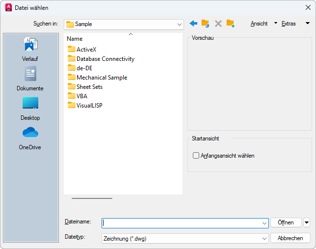 Zeigt eine Bitmap der ausgewählten Datei an. Mit der Option Miniaturvoransicht speichern auf der Registerkarte Öffnen und Speichern im Dialogfeld Optionen speichern Sie eine Bitmap mit einer Zeichnungsdatei.