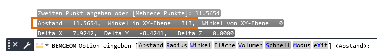 Die Messungen werden im Befehlsfenster angezeigt. Falls erforderlich, drücken Sie F2, um das Befehlsfenster zu erweitern.