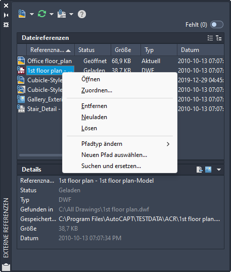 Wenn die betreffende Referenz zugeordnete XRefs oder Blockdefinitionen aufweist, werden die Referenz und die verschachtelten Referenzen im Dialogfeld Referenz bearbeiten angezeigt und können ausgewählt werden. Die verschachtelten Referenzen werden nur dann angezeigt, wenn das ausgewählte Objekt zu einer verschachtelten Referenz gehört. Es ist nicht möglich, mehrere Objekte gleichzeitig zum Bearbeiten auszuwählen. Wenn Sie eine Referenz bearbeiten, die OLE-Objekte enthält, werden die OLE-Objekte zwar angezeigt, können jedoch nicht zur Bearbeitung ausgewählt werden.
