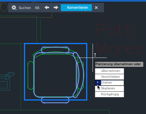 Nachdem Sie eine vorhandene Blockdefinition ausgewählt haben, können Sie den Maßstab und die Drehung anpassen, um zu bestimmen, wie die ausgewählte Blockdefinition die gefundenen Instanzen ersetzen soll.