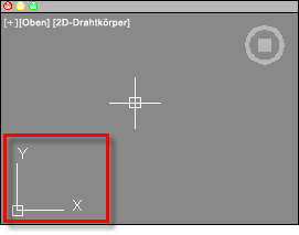 Der Zeichenbereich zeigt ein Symbol für die XY-Achse eines rechteckigen Koordinatensystems an, das als Benutzerkoordinatensystem oder BKS bezeichnet wird.
