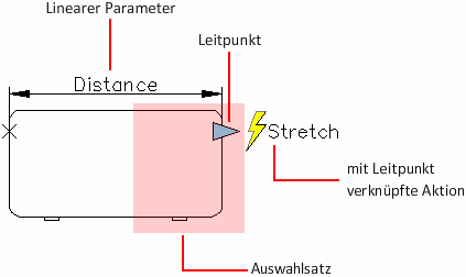 Aktionen definieren, wie die Geometrie einer dynamischen Blockreferenz verschoben oder geändert wird, wenn die Griffe bearbeitet werden.