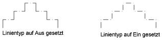 Erzeugt den Linientyp als fortlaufendes Muster durch die Scheitelpunkte der Polylinie. Ist diese Option ausgeschaltet, beginnt und endet jedes Segment an einem Kontrollpunkt mit einem Strich. Die Option Linientyp kann nicht für Polylinien mit konischen Segmenten verwendet werden.