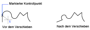 Die meisten Bearbeitungsbefehle haben auf Spline-angeglichene Polylinien und angeglichene Kurven dieselbe Wirkung.