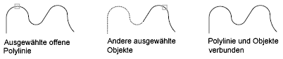 Verbindet die ausgewählten Polylinien wenn möglich durch Dehnen oder Stutzen. Ansonsten werden die ausgewählten Polylinien durch Hinzufügen eines geraden Segments zwischen den nächstliegenden Endpunkten verbunden.