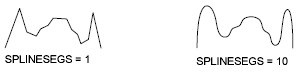 Wenn Sie die Anzahl der zur Anpassung eines vorhandenen Spline verwendeten Segmente ändern möchten, ändern Sie den Wert von SPLINESEGS und lassen die Kurve erneut berechnen. Es ist nicht erforderlich, die Kurve zuerst zu begradigen.