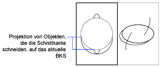 Legt fest, dass eine Projektion auf die XY-Ebene des aktuellen BKS erfolgt. Der Befehl stutzt Objekte, die die Schnittkante im 3D-Raum nicht schneiden.