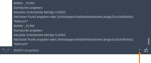 Sie können das erweiterte Befehlsprotokoll auch anzeigen, ohne ein eigenes Fenster zu öffnen. Drücken Sie F2 oder verwenden Sie das Steuerelement am rechten Ende der Befehlszeile, zum Anzeigen des erweiterten Befehlsprotokolls.