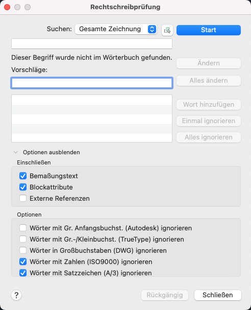 Legt bestimmte Textoptionen fest, die in der Zeichnung überprüft werden.