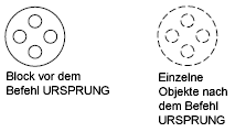 Löst ein zusammengesetztes Objekt in seine Teilobjekte auf. Dies entspricht genau der Funktionsweise des Befehls URSPRUNG.