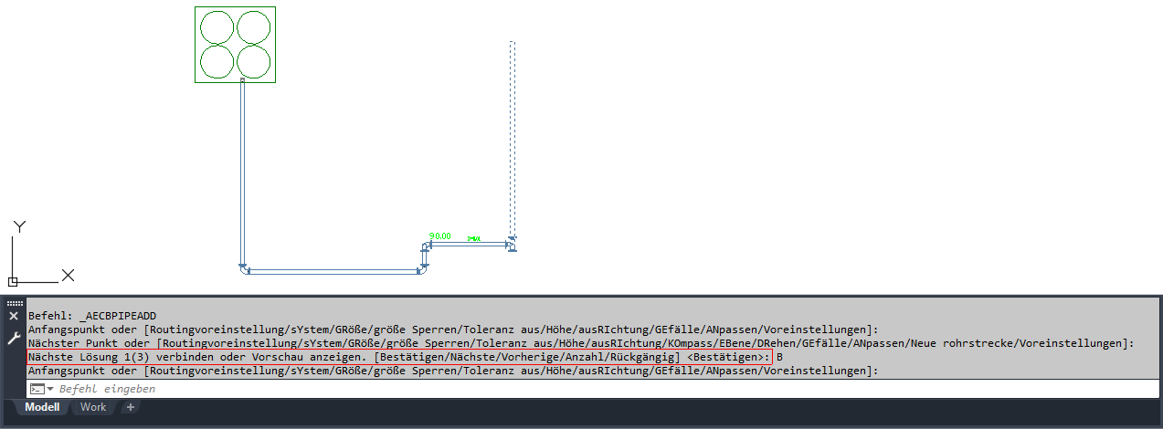 Informationen über das Starten einer Rohrstrecke von einem vorhandenen Rohrobjekt finden Sie unter "Hinzufügen von Rohren mit Griffen" oder "Anschließen an ein vorhandenes Rohr".