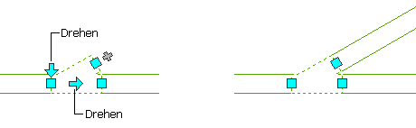 Wenn Sie Bauteile, Formstücke oder Abzweige drehen, die mit anderen Objekten verbunden sind, werden die verbundenen Objekte angepasst, um die Verbindungen zu erhalten. Nach dem Spiegeln eines Formstücks werden eventuell geringfügige Änderungen an der Länge von verbundenen Luftkanal/-rohr-Segmenten vorgenommen. Wenn die Objekte nicht angepasst werden können, werden sie getrennt.