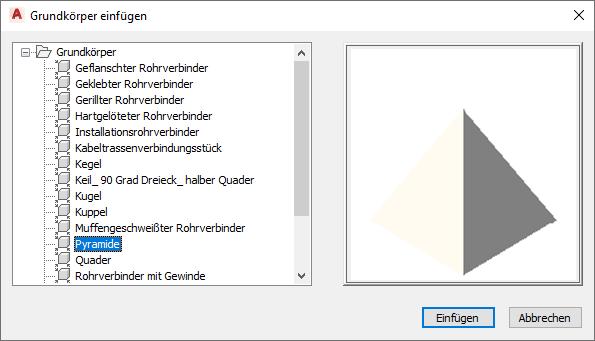 | Einfügen einer gespiegelten Kopie des Grundkörpers | Geben Sie s (für Spiegeln) ein, und drücken Sie die EINGABETASTE. |