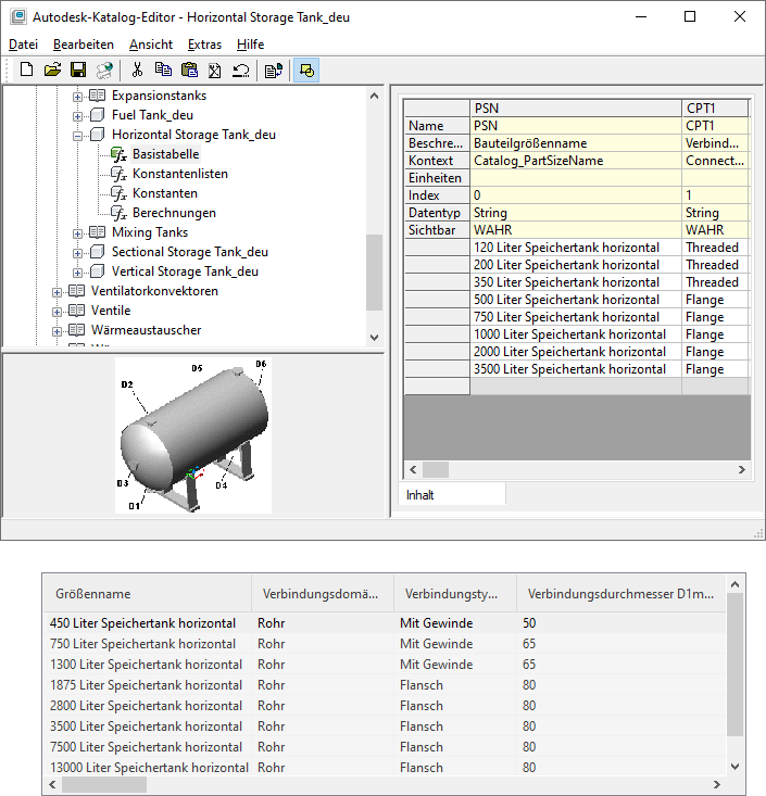 Anzeigen von Bauteilgrößen im Katalog-Editor und in der Bauteilgrößentabelle des Dialogfelds Hinzufügen