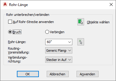 Anwenden des Längenbefehls auf die gesamte Rohrstrecke Wählen Sie die Option zum Anwenden auf die Rohrstrecke.
