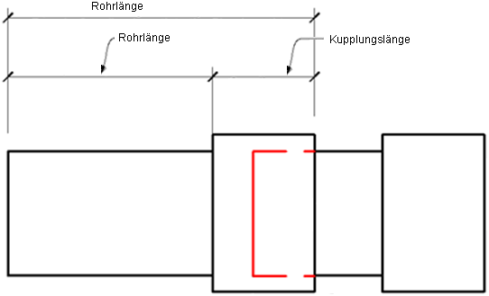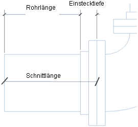 Die Schnittlänge bezieht sich auf den Abstand zwischen Verbindern in einem Rohrsegment. In der folgenden Abbildung wird auf Grundlage der Einstecktiefe zwischen Rohrlänge und Schnittlänge unterschieden.