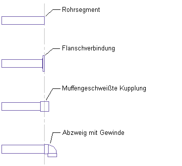 Die Rohrlänge kann variieren, je nach dem welche Komponente an das Rohr angeschlossen ist. In den folgenden Abbildungen sehen Sie verschiedene Beispiele für Rohre.