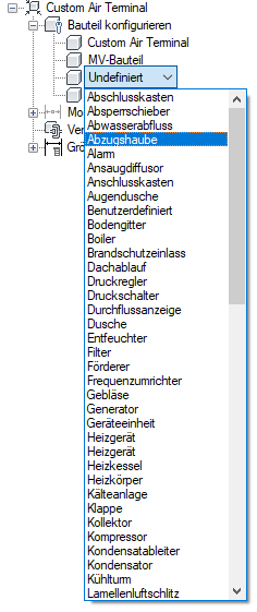 - Wählen Sie unter Bauteiltyp Luftauslass aus.