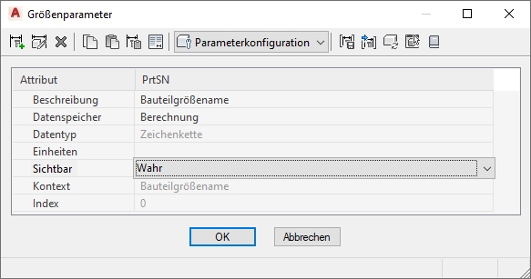 - Wenn Sie die Bearbeitung der Eigenschaften von Bauteilgrößen abgeschlossen haben, klicken Sie auf OK.