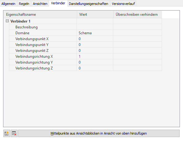 - Geben Sie Werte für die Verbindungspunktkoordinaten X, Y und Z an, oder klicken Sie auf Mittelpunkte aus Ansichtsblöcken in Ansicht von oben hinzufügen, um einen zentrierten Verbinder zu erstellen.