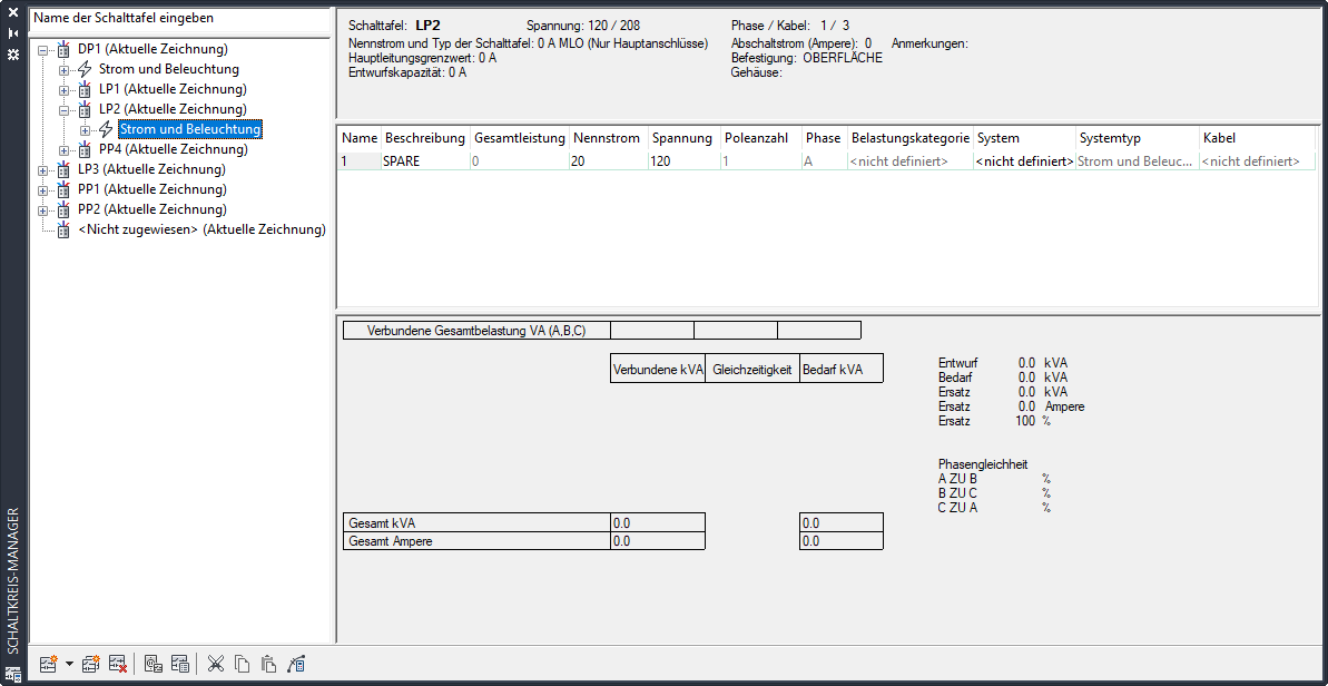 Mit dem Schaltkreis-Manager können Sie Schaltkreisdaten und Informationen für Elektrosystemzeichnungen anzeigen. Wenn Sie eine Elektro-Projektdatenbank verwenden, können Sie Schaltkreisdaten in allen verknüpften Zeichnungen anzeigen. Wenn Sie keine Elektro-Projektdatenbank verwenden, können Sie Schaltkreisdaten in der aktuellen Zeichnung anzeigen.