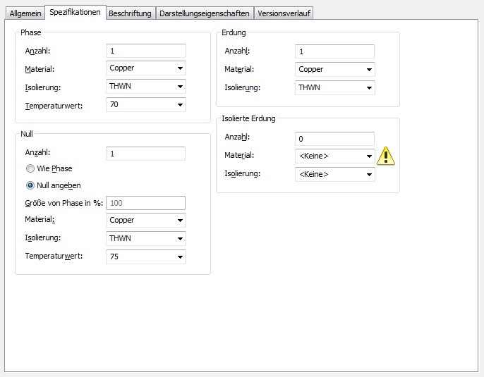 - Geben Sie unter Erdung und Isolierte Erdung die Eigenschaftswerte für die Erdungsleiter an: