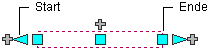 Wenn das Rohrsegment nicht an ein anderes Objekt angeschlossen ist, können Sie mithilfe des Start- oder Endgriffs Länge und Winkel ändern. Mithilfe dieser Griffe können Sie die XYZ-Position des Startpunkts und des Endpunkts eines Segments ändern. Dies ist insbesondere in der konzeptuellen Entwurfsphase von Strecken praktisch, weil Sie auf diese Weise ein Segment mit einer Strecke verbinden können.