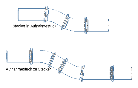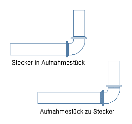 Stecker/Aufnahmestück-Formstücke und Verbindungsrichtung
