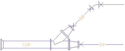 Es ist auch möglich, grafische 1-Linien-, 1-Linien- und 2-Linien-Darstellungen in derselben Zeichnung zu kombinieren. Sie können 1-Linien-Darstellungen verwenden, um ein konzeptuelles Layout zu erstellen, Platz zuzuweisen oder eine einfachere Ansicht eines Systems in einer komplexen Zeichnung zu zeigen. Zum Plotten können 2-Linien-, 1-Linien- und grafische 1-Linien-Darstellungen in derselben Zeichnung kombiniert werden. Es ist möglich, Luftkanal/-rohr-Systeme mit großem Durchmesser als skalierte 2-Linien-Darstellungen, Systeme mit mittlerem Durchmesser als skalierte 1-Linien-Darstellungen und Systeme mit kleinem Durchmesser als grafische 1-Linien-Darstellungen anzuzeigen. In der folgenden Abbildung werden die Systeme mit größerem Durchmesser als 2-Linien- und die Systeme mit kleinerem Durchmesser als 1-Linien-Darstellung angezeigt.