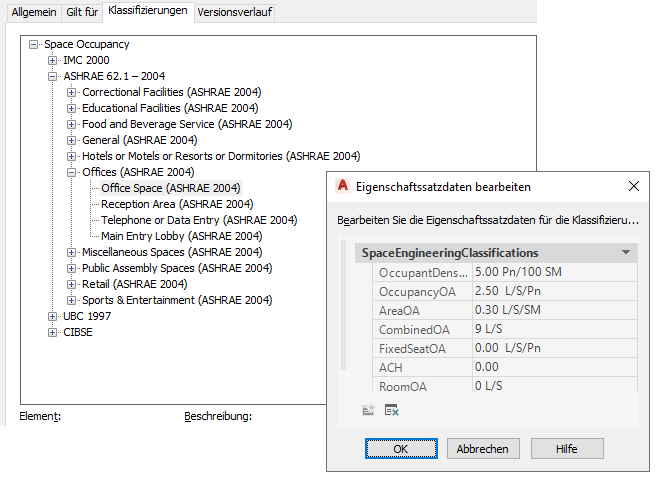 So zeigen Sie Klassifizierungsdefinitionen für Belegungsdichten und Luftströme an