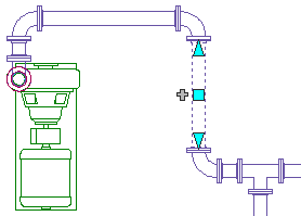 Die an das Rohr angeschlossenen Formstücke werden zusammen mit dem Rohr mitverschoben, aber alle anderen Komponenten der Strecke bleiben an ihrer ursprünglichen Position. Die mit dem Rohr verbundenen Bogen werden zusammen verschoben und die Länge der mit den Bogen verbundenen Rohre ändert sich. Das System bleibt verbunden.