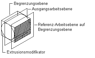 Eine Referenz-Arbeitsebene ist definiert als Ebene auf der Fläche einer Modifikatorgrenze. Jeder Modifikator verfügt über eine unsichtbare Grenze bzw. einen Begrenzungsrahmen, der die Ausdehnung des Elements festlegt. Sie können eine Arbeitsebene erstellen, die eine der Begrenzungsebenen referenziert. Zum Erstellen einer Referenz-Arbeitsebene wählen Sie einen Modifikator und eine Ausgangsarbeitsebene aus, die die Ausrichtung der Ebene darstellt, die Sie erstellen möchten. Die Begrenzungen oder der Begrenzungsrahmen des Merkmals werden ermittelt und zwei zulässige Referenz-Arbeitsebenen zur Auswahl angeboten. Wenn der Modifikator verschoben oder in der Größe angepasst wird, verschiebt sich die Referenz-Arbeitsebene mit ihm.