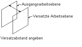Eine versetzte Arbeitsebene befindet sich in einem gewissen Abstand von einer anderen Arbeitsebene. Diese Arbeitsebene kann von jeder vorhandenen Arbeitsebene, selbst einer anderen versetzten oder Referenz-Arbeitsebene, versetzt werden. Eine Versatz-Arbeitsebene wird definiert, indem Sie eine Ursprungsarbeitsebene auswählen und eine Entfernung zwischen den Arbeitsebenen angeben. Sie können versetzte Arbeitsebenen verwenden, um angegebene oder berechnete Abstände zwischen Merkmalen wie Profilen, Geometrie oder Modifikatoren beizubehalten. Sie können auch versetzte Arbeitsebenen als Konstruktionsrichtlinien verwenden, um Merkmale zu positionieren, die sonst parametrisch nur schwierig positioniert werden könnten. Sie können z. B. eine versetzte Arbeitsebene verwenden, um die Länge eines Übergangsstücks festzulegen.