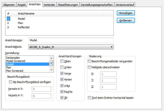 Durch Definieren mehrerer Ansichten mit derselben Darstellung und denselben Ansichtsrichtungen können Sie ein Objekt gleichzeitig mithilfe von beschrifteten und unbeschrifteten Ansichtsblöcken anzeigen, und Sie können die Darstellungseigenschaften der Ansichtsblöcke unterschiedlich konfigurieren. Beispiel: Ein Anschlusskasten-Stil erfordert einen Ansichtsblock für die Darstellung der Symbole und einen zweiten Ansichtsblock für die Darstellung der Beschriftung. So können Sie die Darstellung des Beschriftungs-Ansichtsblocks definieren, indem Sie die Beschriftungs-Darstellungskomponente für den Anschlusskasten konfigurieren, und die Darstellung des Symbols können Sie definieren, indem Sie die anderen Darstellungskomponenten für den Anschlusskasten konfigurieren.