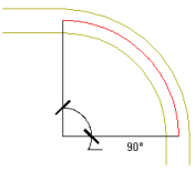 Pfadwinkel Gibt einen Winkelwert an, der den Abtastpfad des Bogens darstellt. Winkelwerte werden im Kataloginhalt gespeichert und hängen vom Typ des Installationsrohr-Formstücks ab: