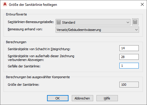 - Notieren Sie sich den berechneten Wert für Sanitärobjekte in Steigrichtung. Diesen Wert benötigen Sie in den folgenden Schritten.