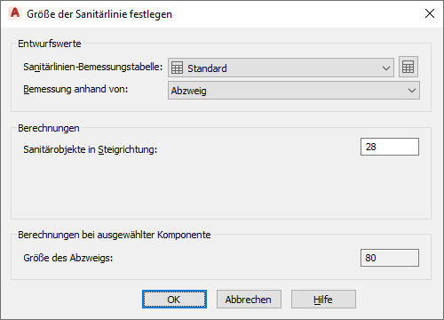 - Notieren Sie sich den berechneten Wert für Sanitärobjekte von Stapel in Steigrichtung. Dieser Wert wird im folgenden Schritt benötigt.