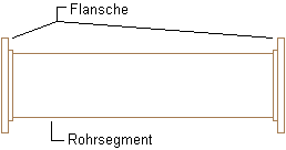 AutoCAD MEP 2027-Toolset behandelt Rohrverbindungen als vom Rohrsegment separate Objekte. Ein Rohrsegment mit Flanschverbindungen besteht in Wirklichkeit aus drei Objekten: einem Rohrsegment und zwei Flanschen.