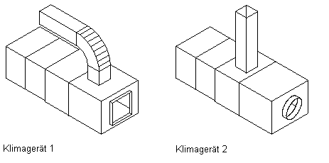 Ausstattung, die als MV-Bauteile bezeichnet wird, erstellen Sie als blockbasierte Bauteile. MV-Bauteile wie etwa Lüftungsgeräte, Motorsteuerungssysteme oder Pumpen bestehen in der Regel aus einer Gruppe eindeutiger Bauteile mit eigenen geometrischen Merkmalen. Form, Größe, Verbindungspunkte und Eigenschaften wie Hersteller oder Material können unterschiedlich sein.