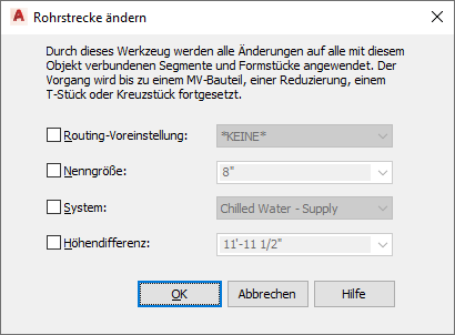 Dialogfeld Rohrstrecke ändern (für Rohre oder Installationsrohre)