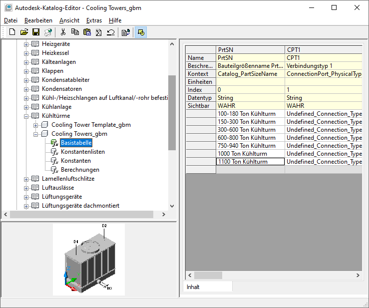 Der Rohrbauteilkatalog enthält Rohrbauteile in Tausenden von Größen. Die Domäne Rohrsysteme enthält die folgenden Bauteiltypen: