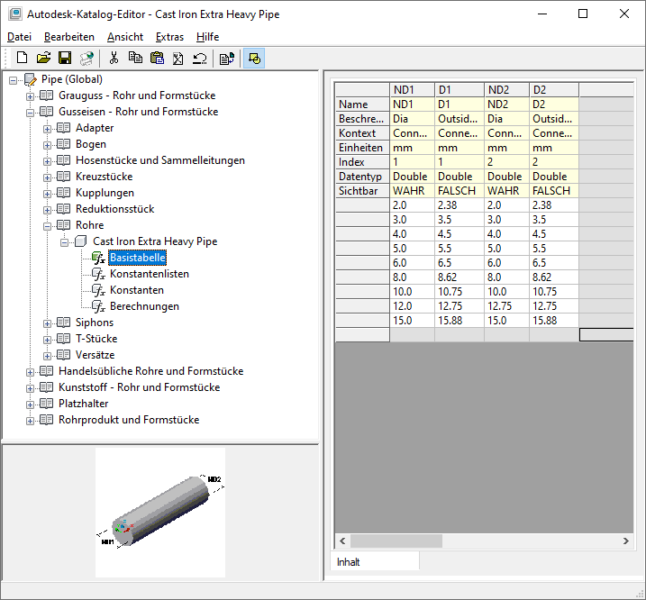 Rohrbauteilkataloge sind je nach Profil, in dem Sie AutoCAD MEP 2027-Toolset ausführen, unterschiedlich aufgebaut. Kataloge in den Profilen US britisch und US metrisch sind nach Materialtyp unterteilt: