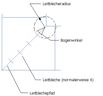 Winkel des Bogens Bestimmt die Größe des Leitblechbogens relativ zum kreisförmigen Pfad, der das Leitblech definiert, beispielsweise 45 Grad entsprechen 1/8 des kreisförmigen Pfads.
