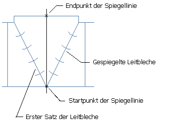 Aktuelle Leitbleche spiegeln Für T-Stücke; spiegelt den ersten Satz von Leitblechen an einer angegebenen Linie
