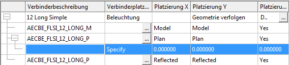 | Ändern eines Verbinders für einen Gerätestil | Wählen Sie den Verbinder aus und ändern Sie mithilfe der verfügbaren Optionen seine Eigenschaften. Anmerkung: Wenn Sie ein Skript verwenden, das mit dem Befehl Geräte zerlegen erzeugt wurde, müssen Sie möglicherweise bei manchen Verbindern einen Wert für die Verbinderplatzierung-Eigenschaft angeben. Im Skript wird für diese Eigenschaft standardmäßig der Wert Angeben vorgegeben. Sie können unter den folgenden Optionen wählen: