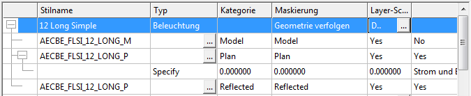 In diesem Dialogfeld werden unterschiedliche Einstellungen angezeigt, je nachdem, ob Sie einen Gerätestil, eine Geräteansicht oder einen Verbinder in der Tabelle auswählen. In den folgenden Abbildungen sind beispielsweise unterschiedliche Spaltenüberschriften für die verschiedenen ausgewählten Objekte zu sehen.