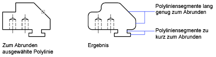 Gerundet werden nur die Segmente, die für die Rundung lang genug sind.
