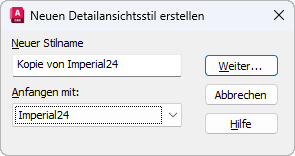 Zeigt das Dialogfeld Neuer Detailansichtsstil an, in dem Sie die Eigenschaften des neuen Detailansichtsstils definieren können.